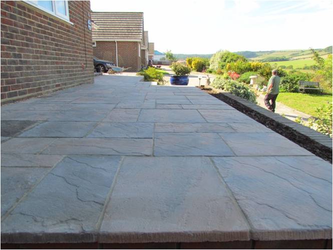 - rejuvenate the paved area by replacing the existing slabs with riven paving