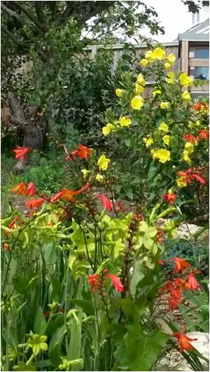 - a border for mixed planting was created next to the front door containing a lavender hedge and perennials such as dahlias & crocosmia